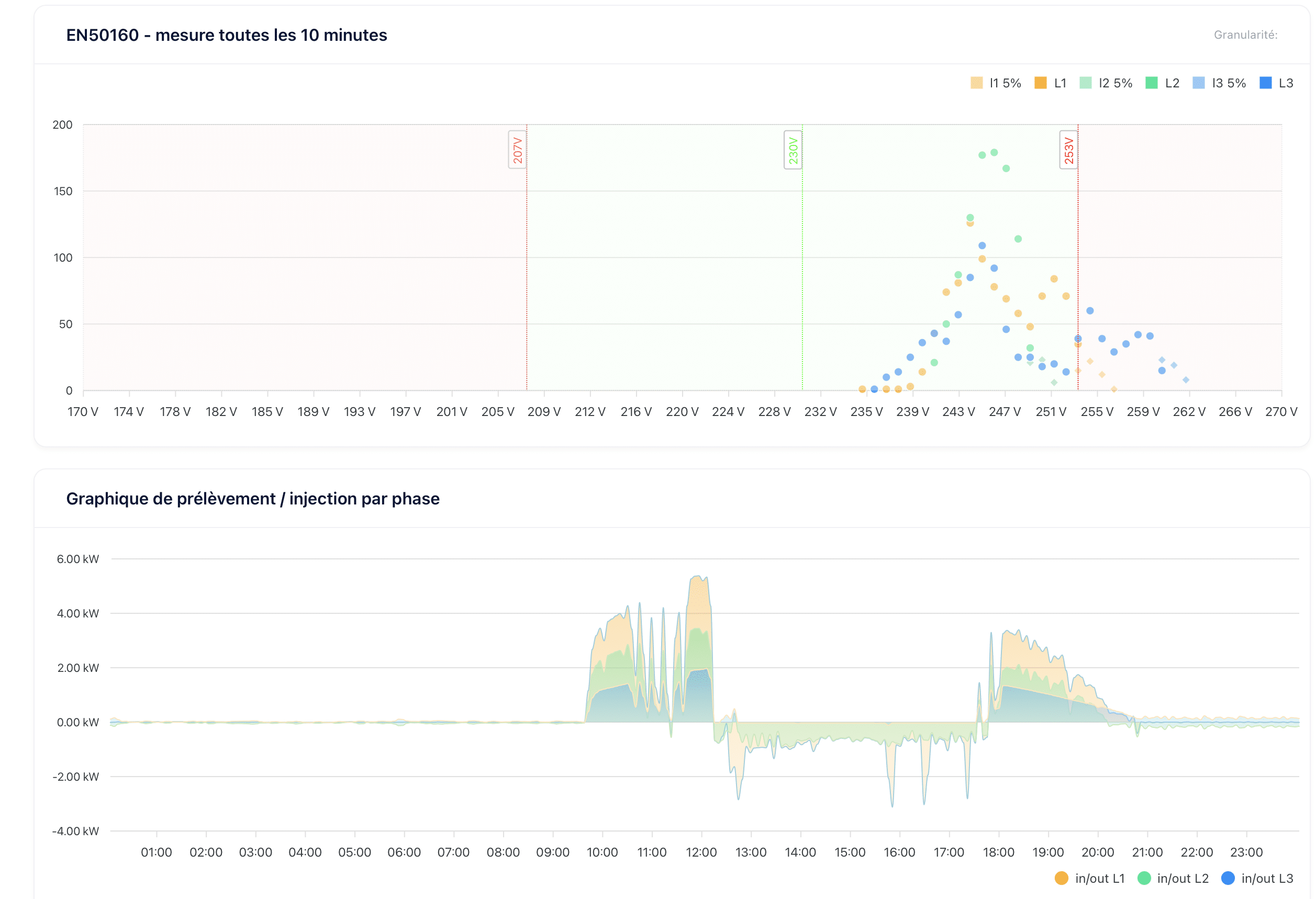 Dans tous les cas, l’enregistrement des données de tension et des limitations de l’injection liées aux décrochages d’onduleurs se poursuit pour tous nos membres ayant choisi de connecter leur dongle P1 OpenWatt à leur compteur communicant.