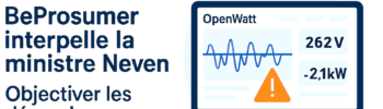Le 15 juin 2025, La Libre Belgique a publié une interview exclusive de la Ministre wallonne de l’Énergie, Cécile Neven (MR), dans laquelle elle affirme vouloir proposer « dans les mois à venir » un mécanisme d’indemnisation pour les Prosumers victimes de décrochages d’onduleurs. « Nous cherchons une façon d’objectiver les décrochages et ses conséquences, afin de proposer une indemnisation … Lire la suite de Indemnité proportionnelle pour les décrochages : BeProsumer interpelle la Ministre Wallonne de l’énergie Cécile Neven