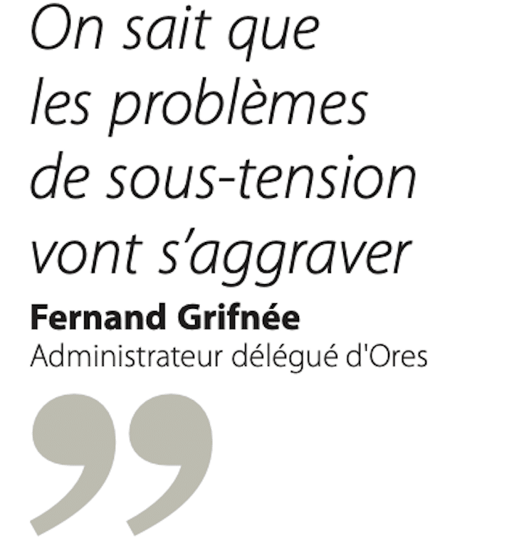 - En période hivernale, ORES évoque des proportions importantes de circuits concernés par des sous-tensions, avec la crainte d’une extension rapide si de nouvelles charges importantes s’ajoutent localement.