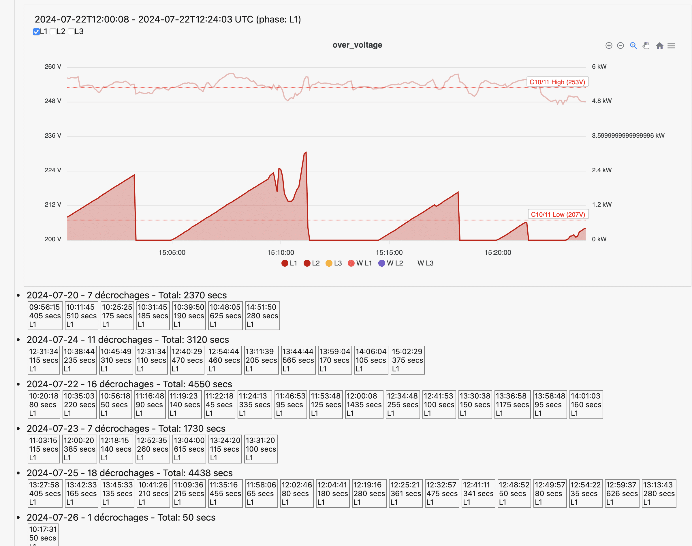 Tous nos membres n'ont pas les connaissances ou compétences techniques pour analyser leur situation personnelle et déterminer quels conseils génériques proposés dans les articles de notre FAQ sont applicables à leur type de décrochages ou à leur type d'installation. Pour ceux qui rencontrent des difficultés techniques et souhaitent des solutions spécifiques, nous avons mis en place La Plate-Forme OpenWatt : Il s'agit d'un dongle P1 à connecter au port de leur compteur communicant. Ce système nous permet de recueillir des données précises et d’analyser chaque installation de manière personnalisée, offrant des recommandations spécifiques pour atténuer les décrochages et optimiser la production en fonction des particularités de chaque installation. Cet outil est essentiel pour collecter les données homologuées par le compteur communicant, nécessaires à toutes nos actions de défense de nos membres. En raison de l'énorme quantité de données collectées toutes les cinq secondes pour une analyse fine des tensions, une plateforme standardisée est indispensable pour organiser et exploiter ces informations dans le cadre de nos initiatives, qu'elles soient à l'amiable ou par voie judiciaire.